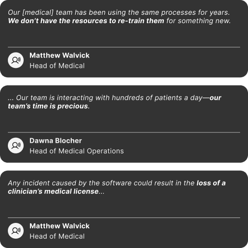 A mistake made by the software could cause a clinician to lose their medical license. The medical team need a platform they can trust to deliver reliable, efficient care.